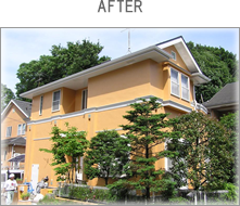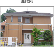 外壁塗装部分約210㎡、屋根約130㎡、プラス外溝廻り(ウッドデッキ含む)塗装の工期は約3週間。